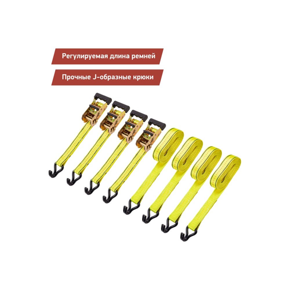 Тип ремень с крюками и фиксатором Стяжное усилие 2 т Длина 4.6 м Ширина 38 мм Цвет желтый Материал полиэстер ГОСТ/ТУ нет Вес нетто 1.77 кг Количество в упаковке 4 шт*Производитель оставляет за собой право без уведомления дилера менять характеристики, внешний вид, комплектацию товара и место его производства. Указанная информация не является публичной офертой
