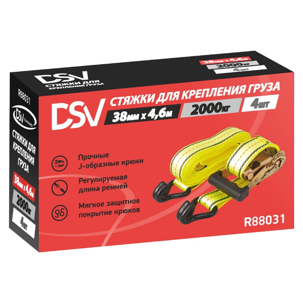 Стяжка для крепления груза DSV 38мм х 4,6м, 2,0 т, 4 шт R88031