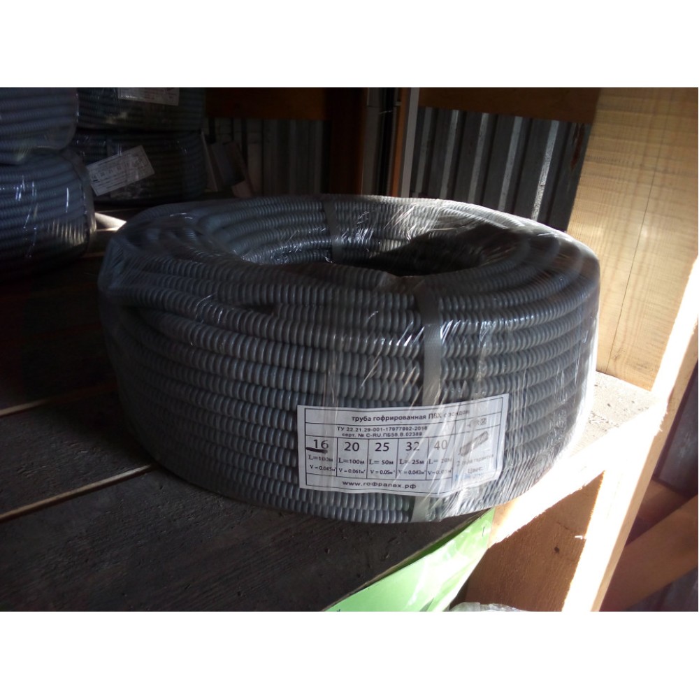 Гофро-труба ПВХ с зондом лёгкая (серая) d 16 мм (100м)