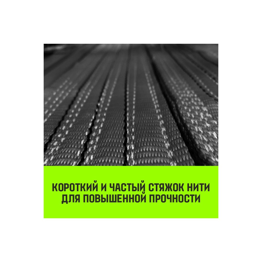 Сшивка, как самое слабое место стропа, рассчитана с учетом заявленной нагрузки и длиннее аналогов, представленных на рынке. Так увеличивается надежность оборудования.