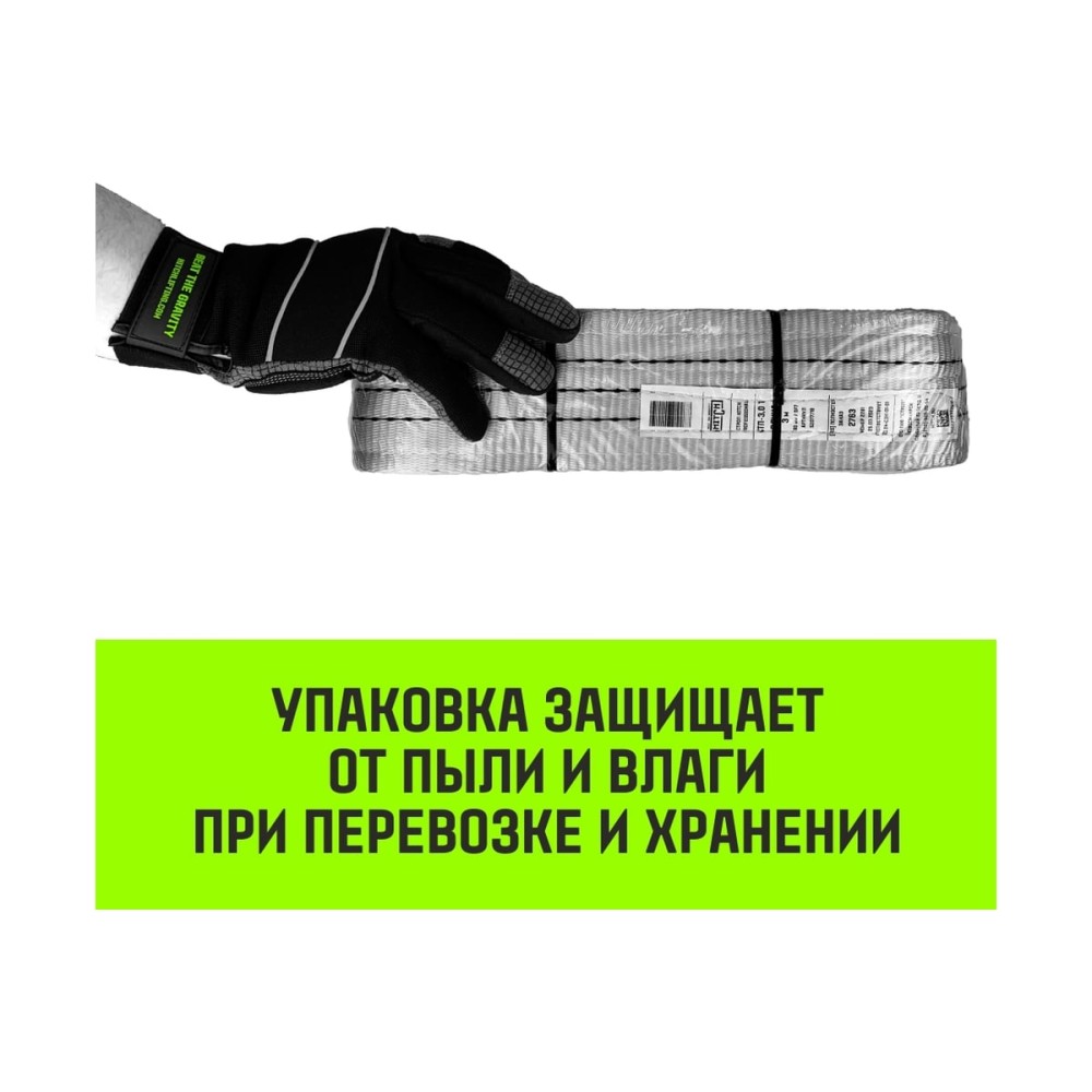 Петли строп меньше перетираются и дольше служат за счет дополнительного чехла, усиливающего эксплуатационные свойства ткани.