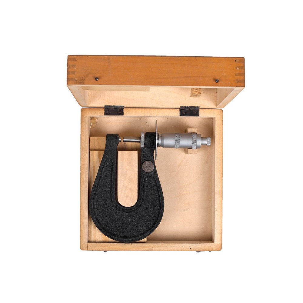 Микрометр листовой МЛ-25 0,01 (циферблат) применяется в различных отраслях промышленности и предназначен для измерения толщины листового черного или цветного металла, бумаги, пластика, а так же лент. U-образная скоба листового микрометра дает возможность измерять толщину листа по всей его площади. Показания считываются по шкалам стебля и барабана измерительной головки. Измерительные поверхности инструмента покрыты твердым сплавом.