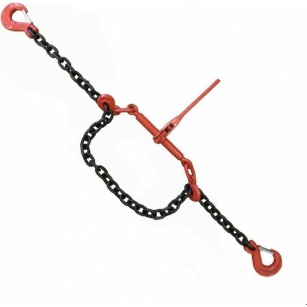 КанТраст Крепежная цепь крюк-крюк со стяжным механизмом 6 мм, 3 м артикул KRTSKK63000STM — это натяжное рычажное устройство с храповым механизмом и состоит из цепной ветви с крюками на концах и храпового механизма - цепного талрепа или другое название рэтчета. Храповый механизм (цепной талреп) укомплектован укорачивающими крюками, которые позволяют надежно фиксировать в нем цепь.