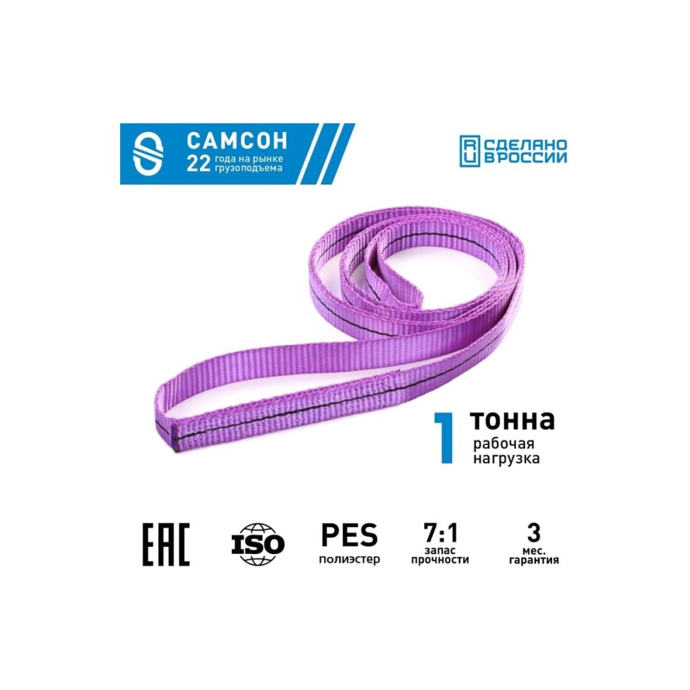 - Строп САМСОН СТК 1,0-2,5 010300040188 имеет запас прочности по отношению к разрывной нагрузке не менее 7:1;