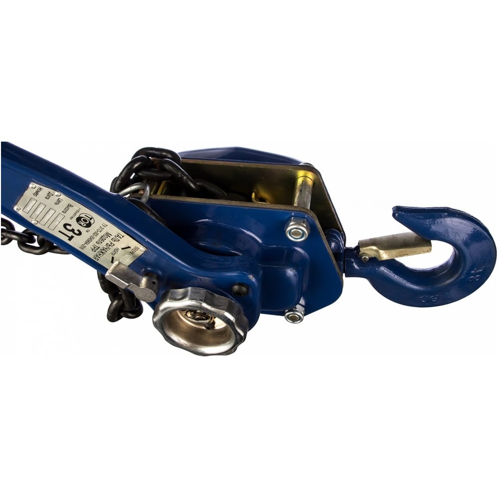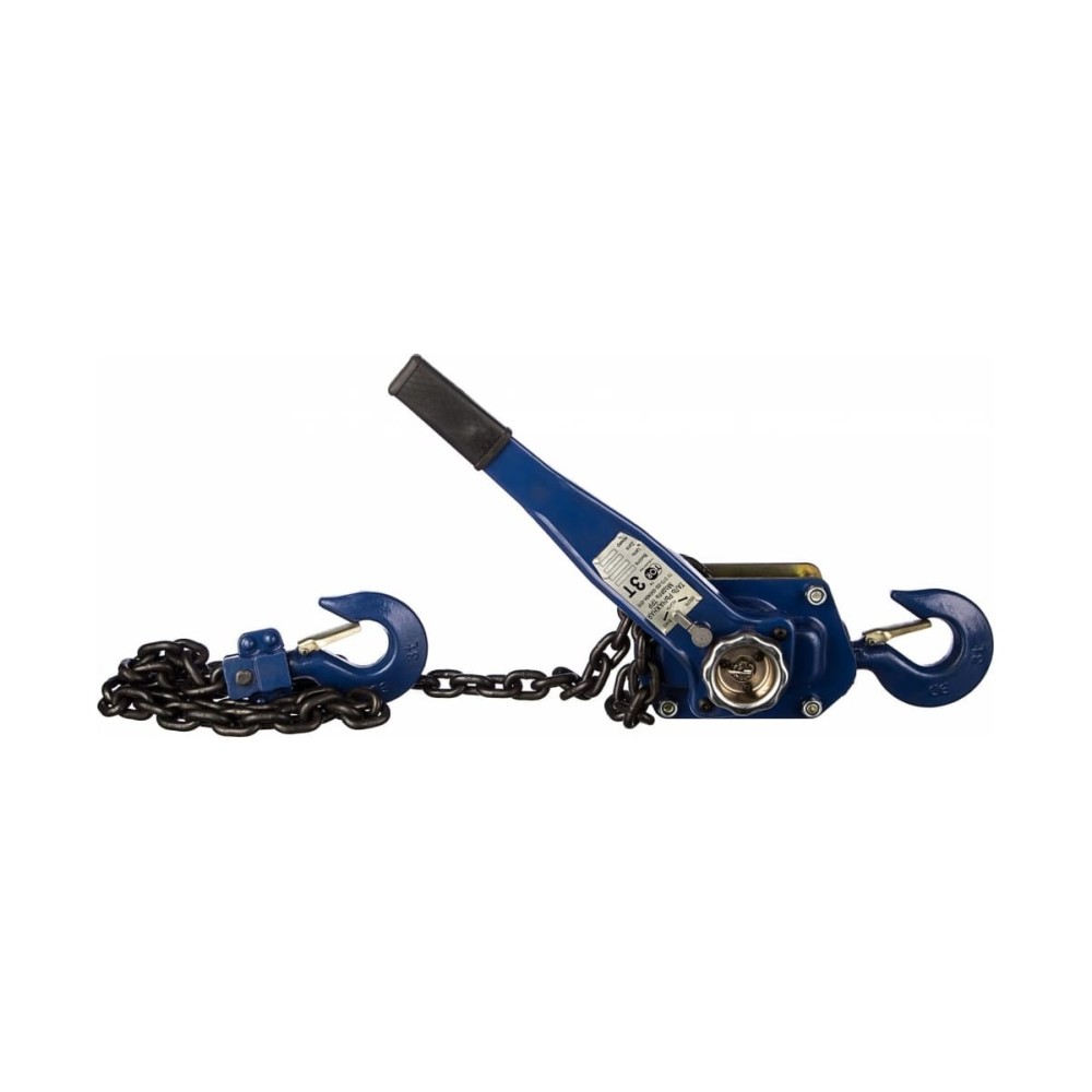 Ручная рычажная таль TOR 10263 осуществляет подъем груза на высоту до 3 метров при помощи физической силы пользователя. Цепь приспособления изготовлена из прутка толщиной 10 мм и выдерживает нагрузку до 6 тонн. Независимость устройства от наличия и расположения электрических розеток способствует минимальному количеству требований к рабочей площадке. Подвесной крюк обеспечивает быстрое закрепление тали на опорной балке.