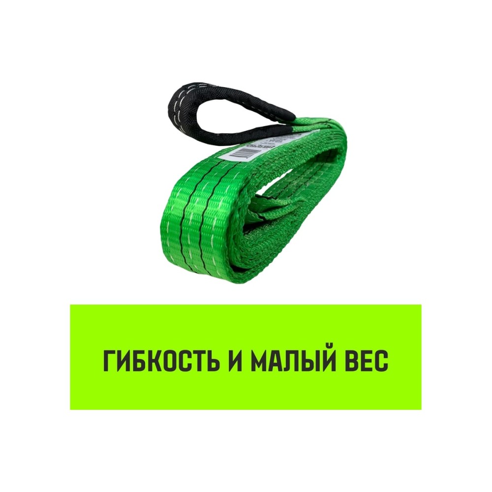 Тип петлевой Грузоподъемность 2 т Материал полиэстер Длина 5 м Ширина 60 мм Цвет зеленый ГОСТ/ТУ РД 24-СЗК-01-01