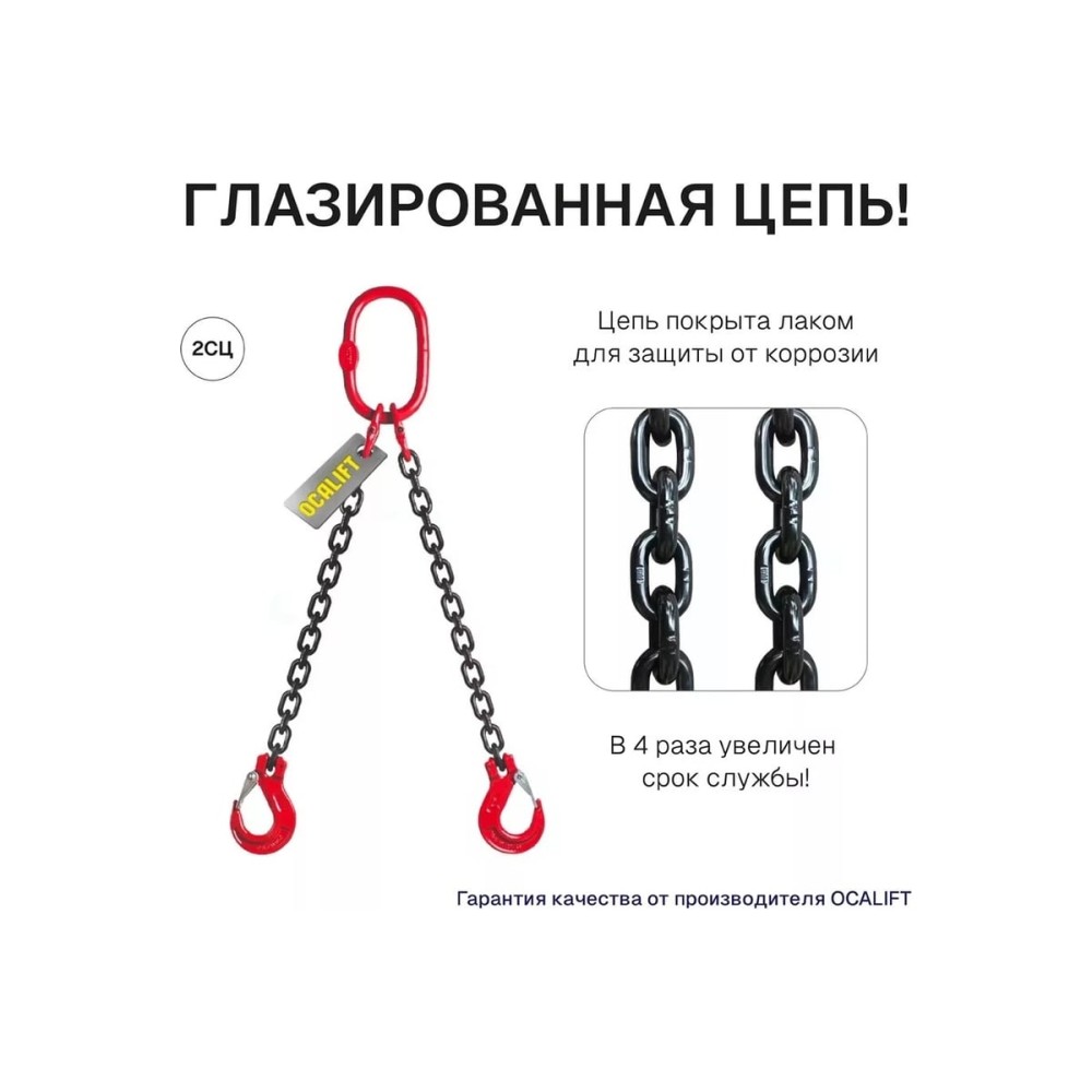 Цепной строп OCALIFT 2СЦ 1,6т 1м с самозакрывающимися крюками двухветвевой цепь глазированная 6x18 T8 G80 2sc1600t1sf