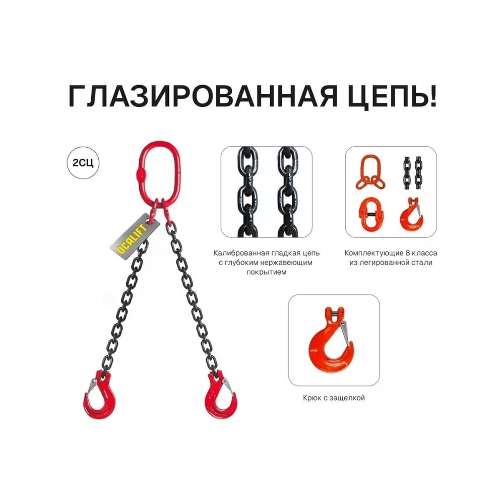 Цепной строп OCALIFT 2СЦ 4,25т 1м двухветвевой цепь глазированная 10x30 T8 G80 2sc4250t1f
