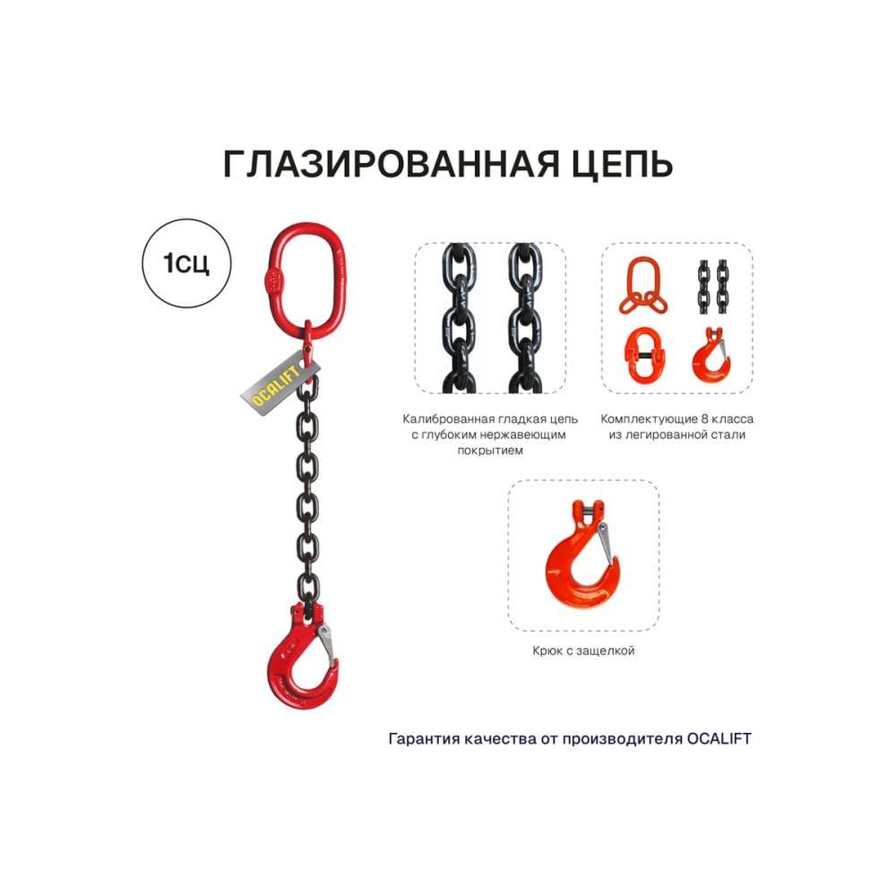 Цепной строп OCALIFT 1СЦ 5,3т 6м одноветвевой цепь глазированная 13x39 T8 G80 1sc5300t6f