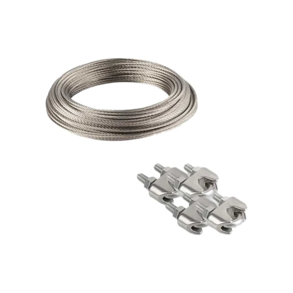 Готовый для монтажа комплект троса и крепежей выполненных из нержавеющей стали. Предназначен для монтажа/подвешивания погружных и скважинных насосов, для растяжки, для систем ограждения, для такелажа, а также для хозяйственно-бытовых нужд. Трос представляет из себя металлический канат, выполненный из нержавеющей стали. Для удобства монтажа в набор входят зажимы для надежного монтажа и фиксации троса, выполненные также из нержавеющей стали.
