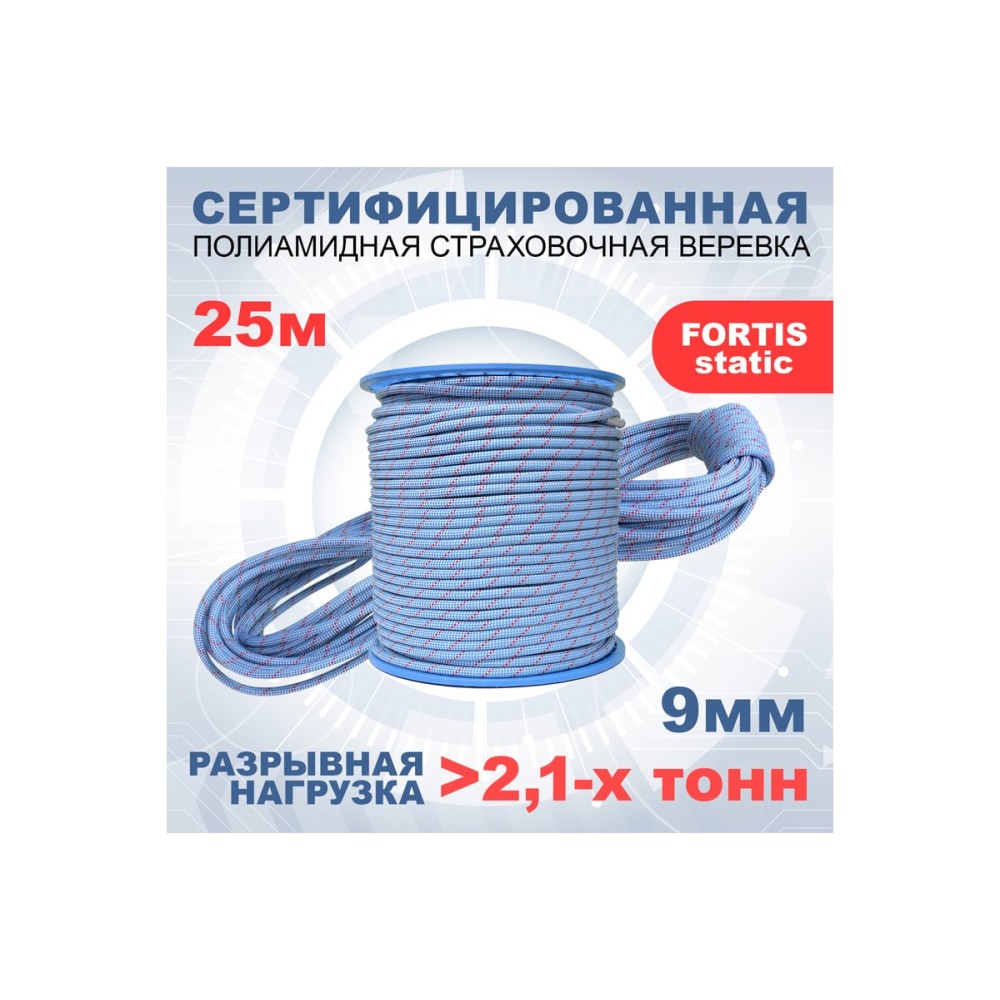Статическая высокопрочная веревка АзотХимФортис Fortis Static, 9 мм, тип Б, 25 м 462299-25
