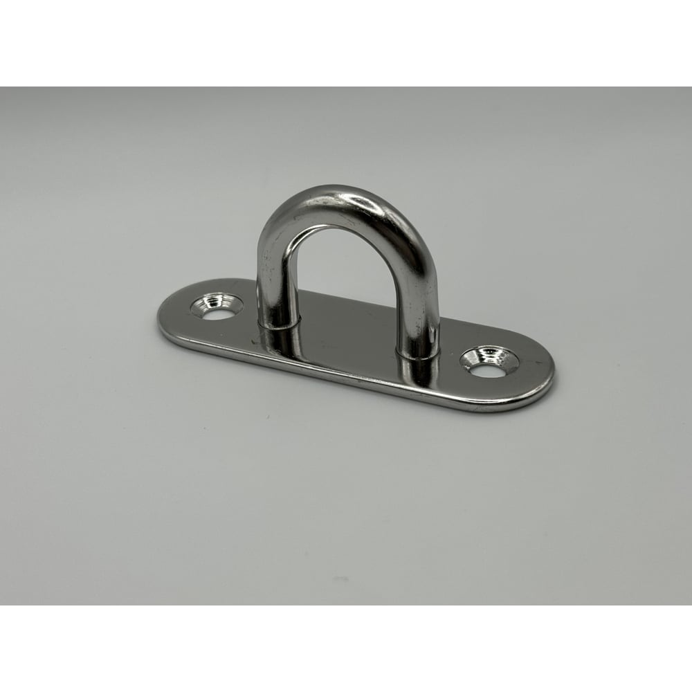 Обушок на овальной пластине арт. 8266 – многоцелевое приспособление в виде U-образной скобы на поковке с двумя отверстиями под крепежные саморезы. Изготовлен из прочной долговечной коррозиестойкой стали, имеет простой и обтекаемый дизайн, без острых углов. Используется для крепления тросов, веревок, цепей. Идеально подходит для разного рода соединителей – карабинов, талрепов, крючков. Легко монтируется на деревянные конструкции, потолочные балки, палубу, а также на бетонные основания, кирпичную кладку и облицованные керамической плиткой стены (в комплекте с дюбелями).