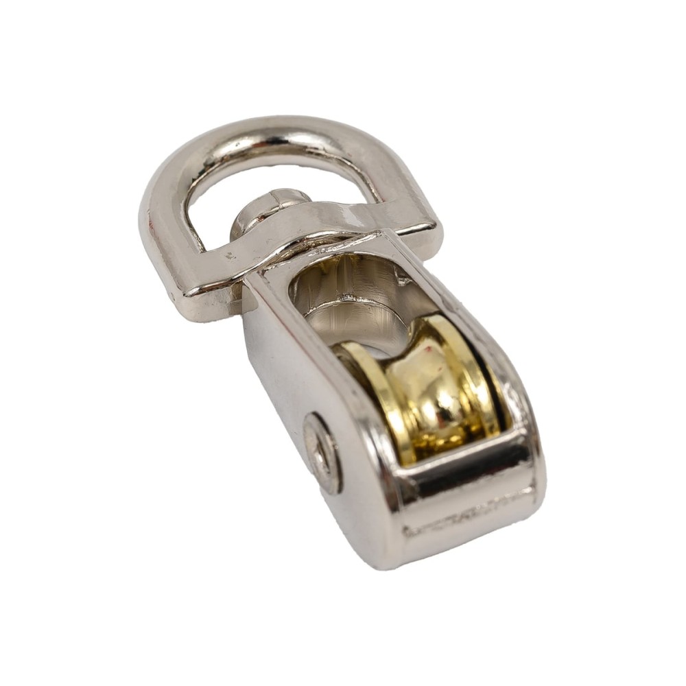 Одинарный блок Bohrer металл. никель, 1/2" 15 мм, под трос 5 мм, 1 шт. BOM-1/2 предназначен для изменения направления движения каната и увеличения силы в грузоподъёмном оборудовании.