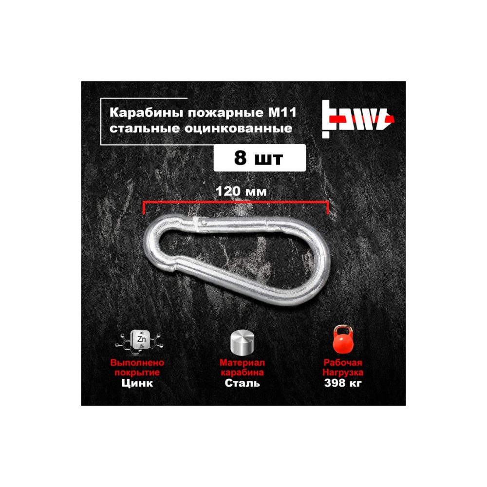 Пожарные карабины BOWT 11 мм, оцинкованные, DIN 5299с, 8 шт. B03447