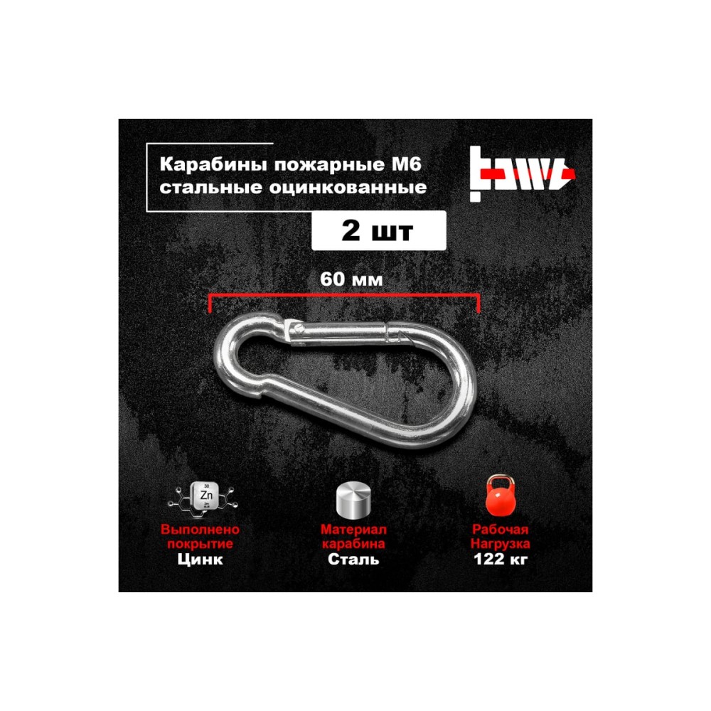 Пожарные карабины BOWT 6 мм, оцинкованные, DIN 5299с, 2 шт. B03414