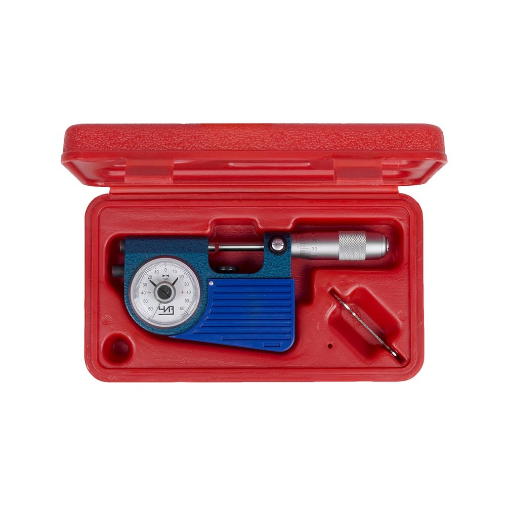 Микрометр рычажный МР- 25 0,001 +/-65 ЧИЗ - это высокоточный прибор, позволяющий измерять абсолютные и относительные линейные размеры деталей в сфере приборо- и машиностроения. Так же с его помощью можно контролировать отклонения, которые составляют разницу с заданным размером, предусмотренных техническими нормами у определенных деталей. Это позволяет контролировать качество серийного производства. Прибор позволяет производить очень точные замеры и имеет небольшой шаг деления, поэтому отклонения фиксируются на мельчайшем уровне. У этой модели рычажного микрометра отсчетное устройство встроено непосредственно в скобу (МР). Измерительные поверхности прибора выполнены из твердого сплава.