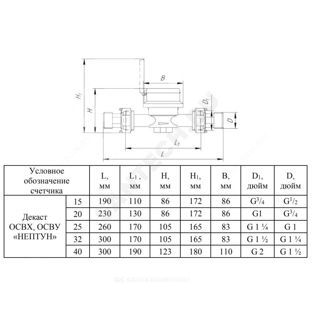Счётчик г/в и х/в крыльчатый одноструйный резьба ОСВУ Декаст