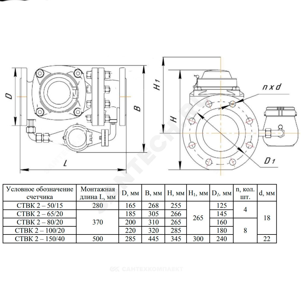 Счётчик х/в комбинированный (крыльчатый и турбинный) фл импульсный СТВК-2 ДГ Декаст IP67