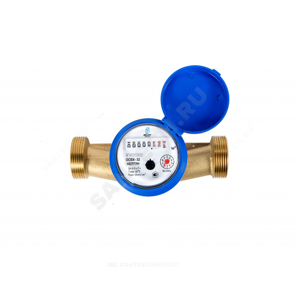 Счётчик х/в крыльчатый одноструйный резьба ОСВХ исполнение "Нептун" Декаст