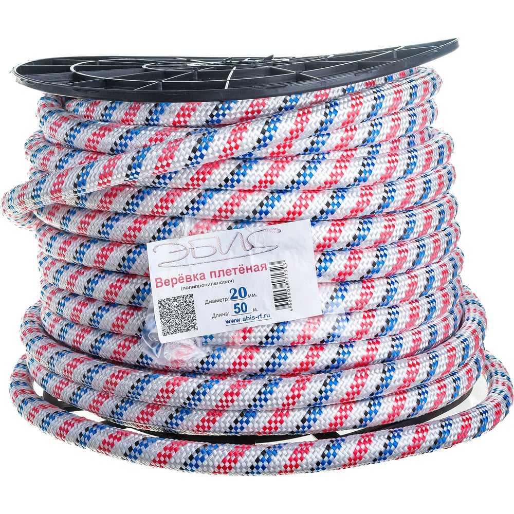 Плетеный полипропиленовый шнур, 48-прядный, катушка, 20мм х 50м Эбис 00101 с сердечником. Используется на строительных площадках при поднятии и закреплении грузов, на производствах.