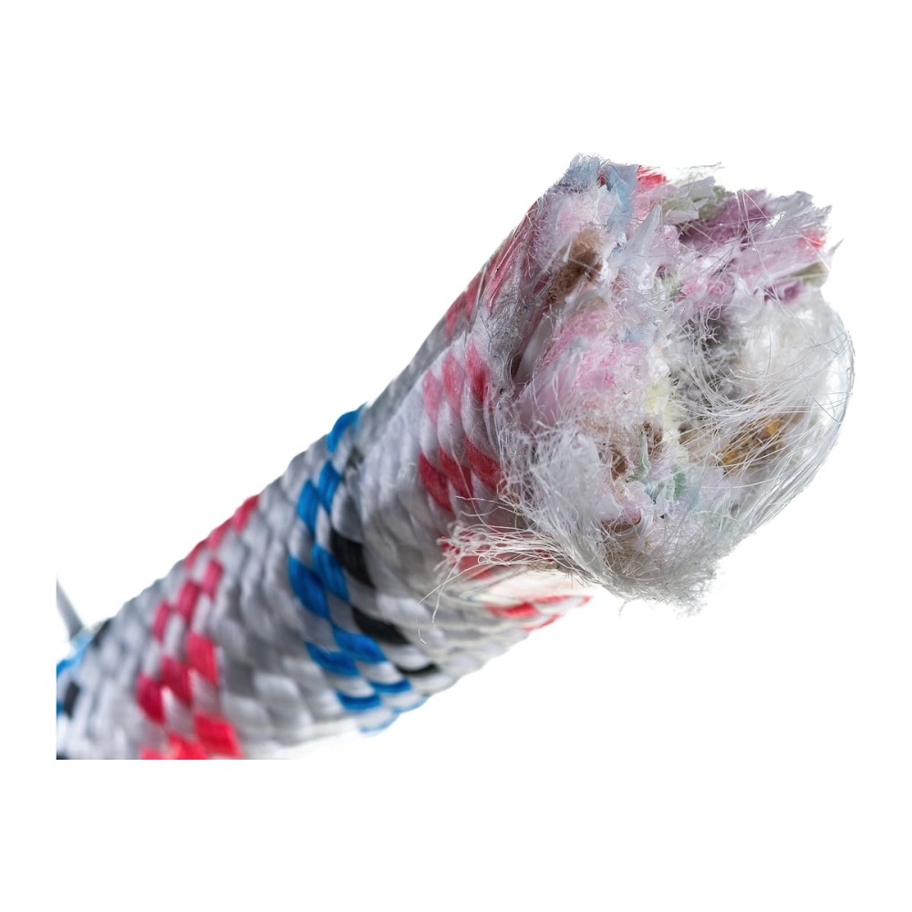 Плетёная веревка стойкая к износу и многократным изгибам, при истирании нити веревка не распускается и продолжает держать груз.