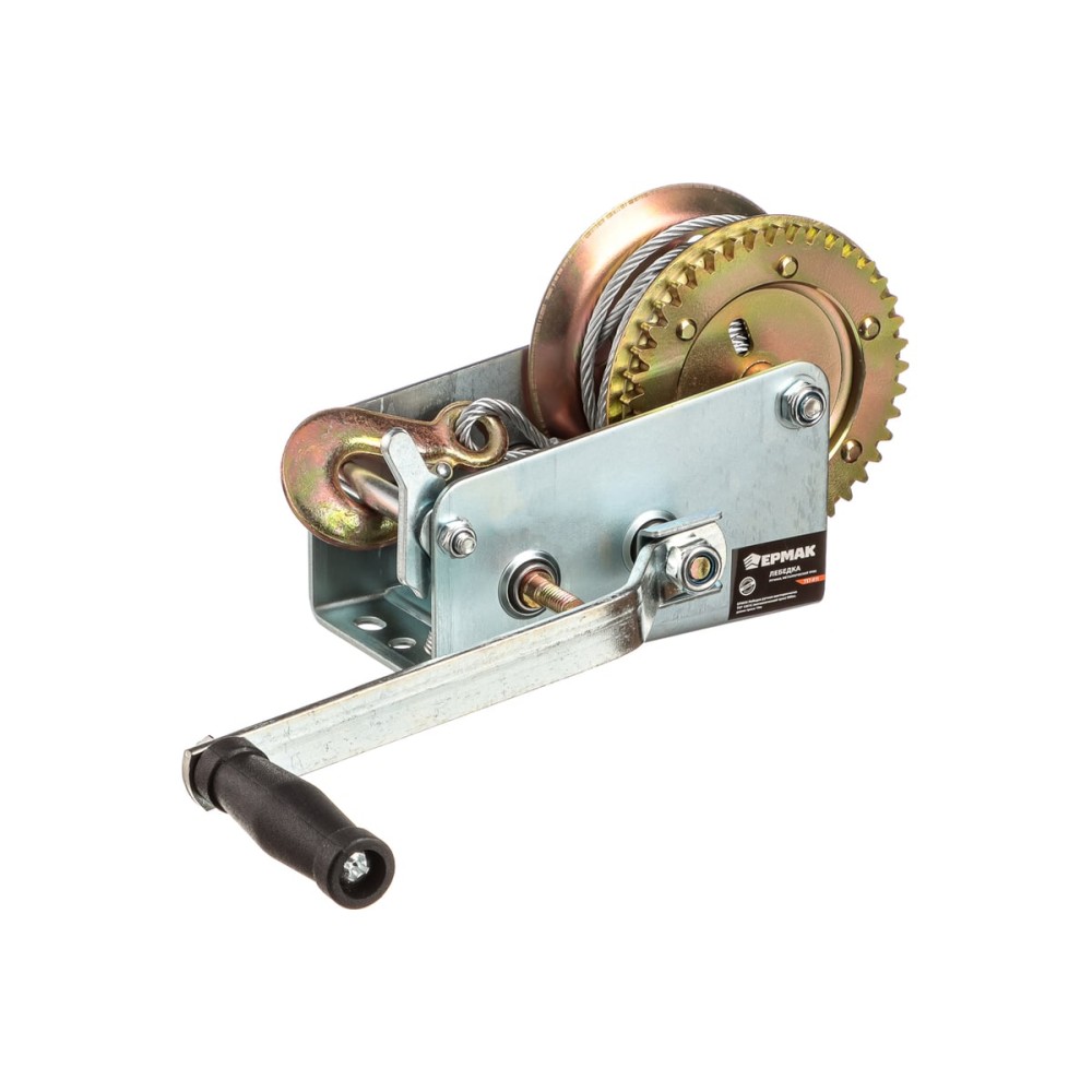 Ручная шестеренчатая лебедка ЕРМАК TRT 1201C (металлический трос) 900кг, длина троса 10м 737-011