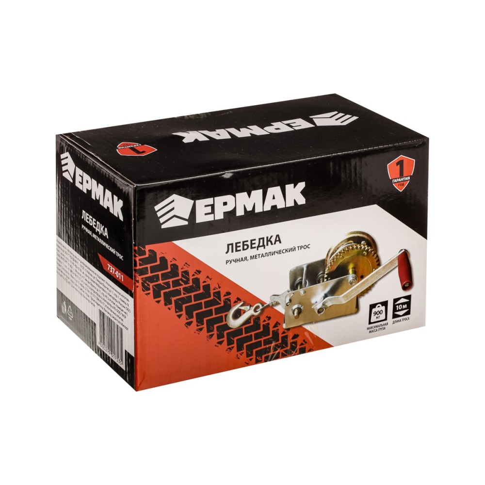 Ручная шестеренчатая лебедка ЕРМАК TRT 1201C (металлический трос) 900кг, длина троса 10м 737-011 – это простой и эффективный инструмент для грузоподъёмных работ. Такая лебёдка прослужит долгие годы без необходимости ремонта или замены.