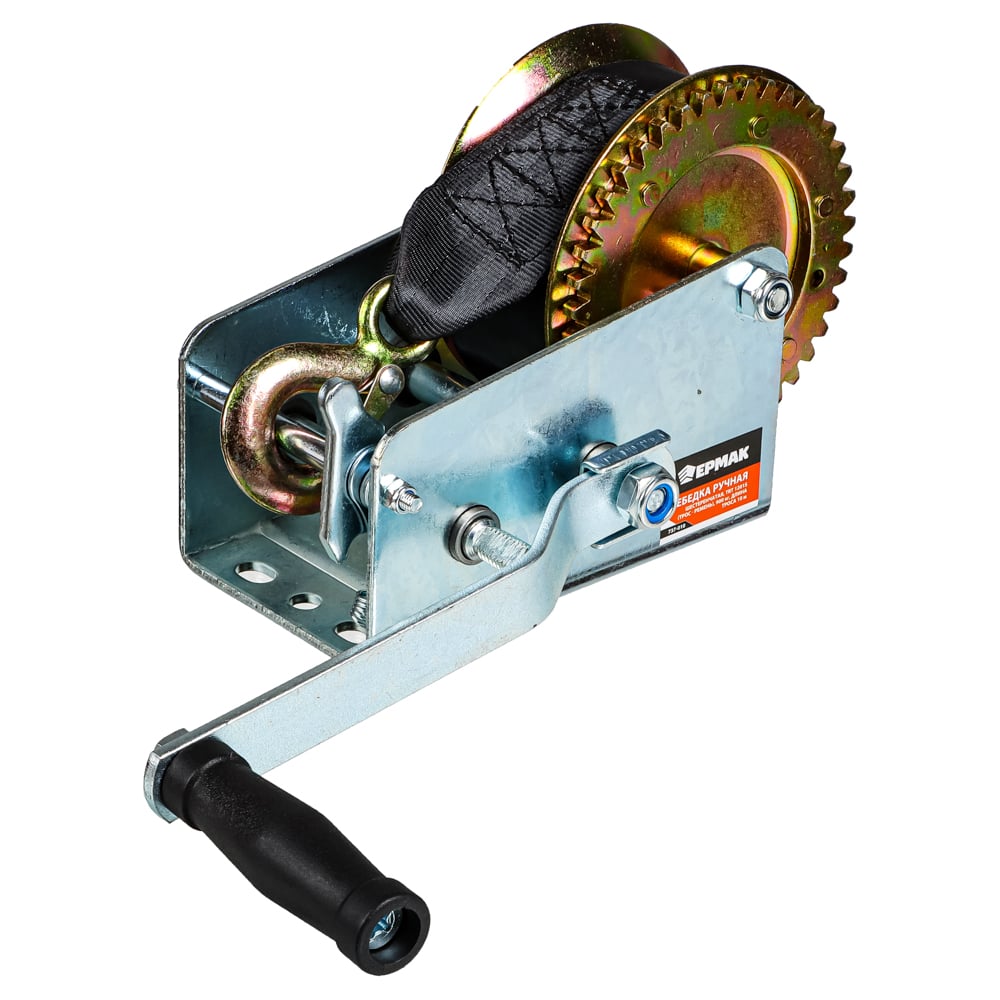 Ручная шестеренчатая лебедка ЕРМАК TRT 1201S трос - ремень, 900кг, длина троса 10м 737-010
