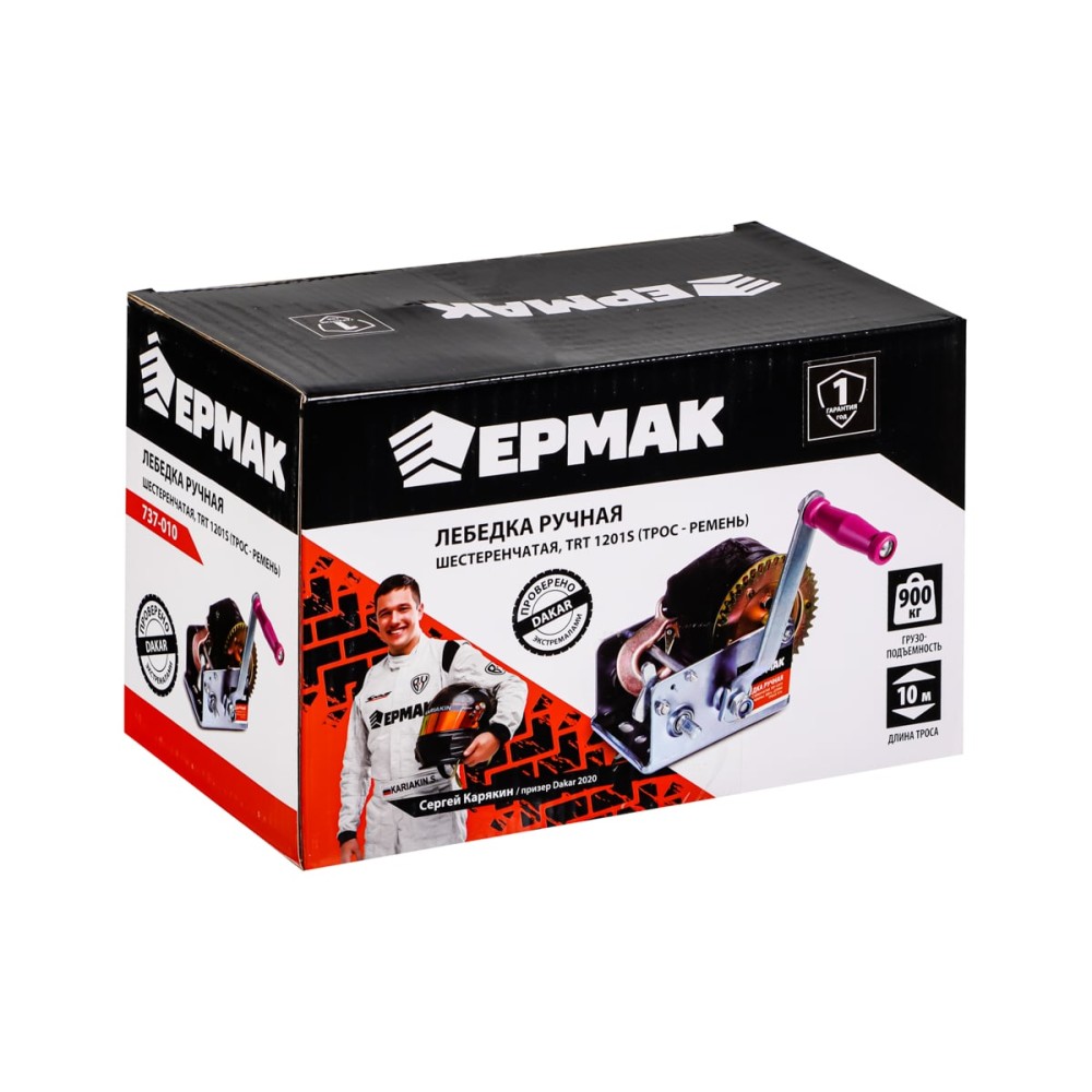 Ручная шестеренчатая лебедка ЕРМАК TRT 1201S трос - ремень, 900кг, длина троса 10м 737-010 – это простой и эффективный инструмент для грузоподъёмных работ. Такая лебёдка прослужит долгие годы без необходимости ремонта или замены.