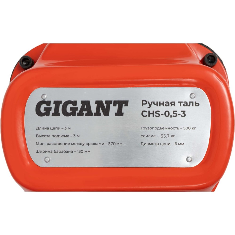 Ручная таль Gigant CHS-0,5-3 используется в гаражах, мастерских, на строительных и ремонтных площадках для подъема материалов или оборудования. Благодаря крюкам с предохранительными карабинами вероятность самопроизвольного срыва груза во время перемещения исключается. Модель оснащается игольчатым подшипником, который обеспечивает высокую надежность и долговечность.