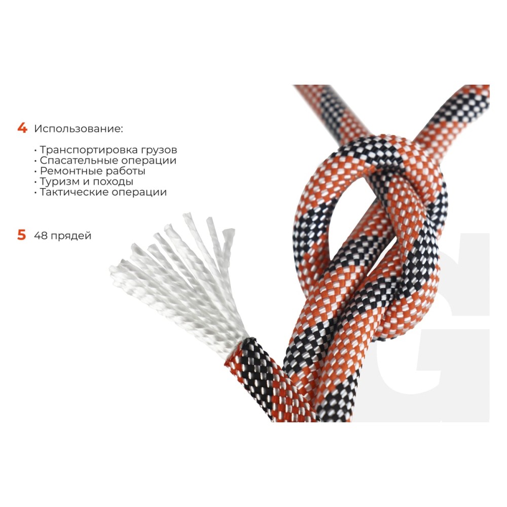 Страховочная высокопрочная веревка Gigant 48 прядей, 10мм х 100м HRS-01