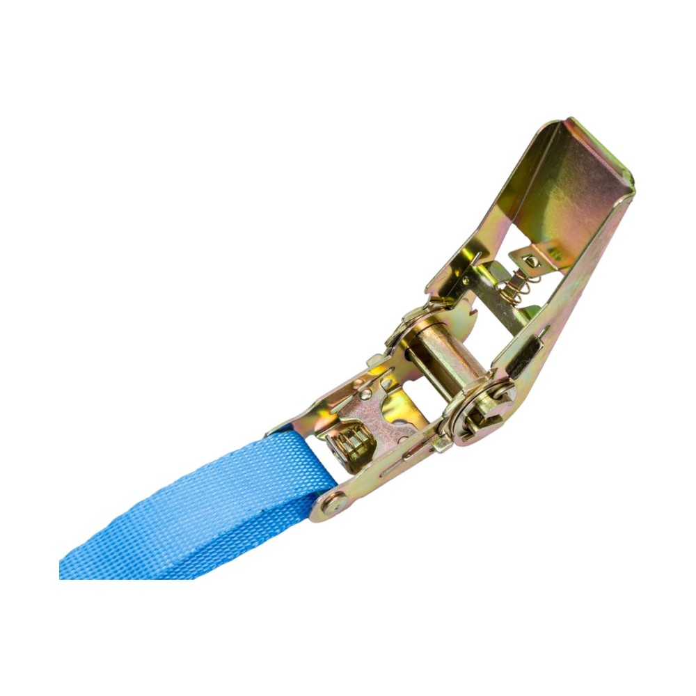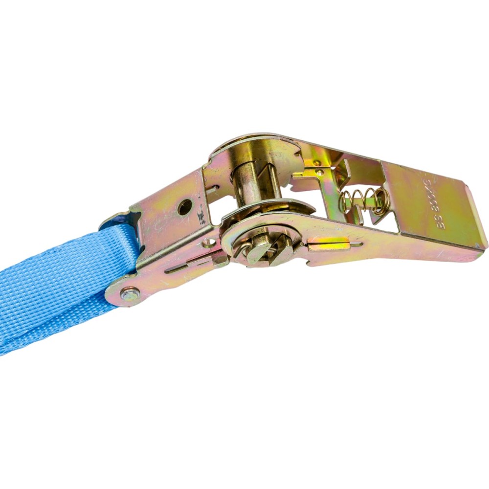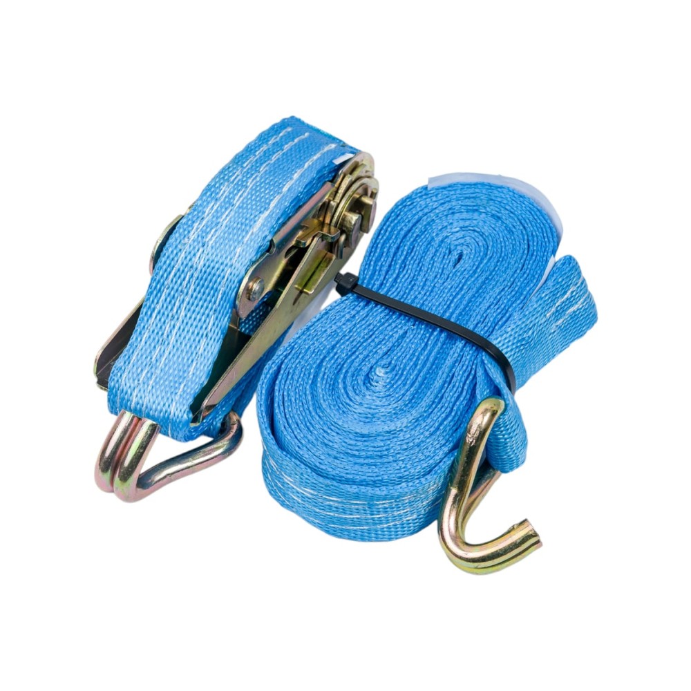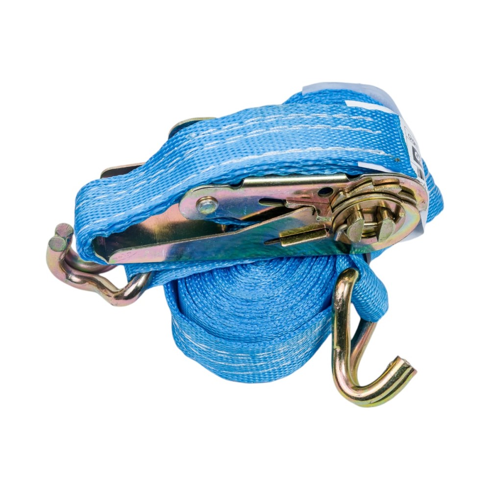 Стяжной ремень для крепления груза Gigant 0,4/0,8т 6м GSR-004 оснащается крюками и металлической трещоткой для стягивания ремня.