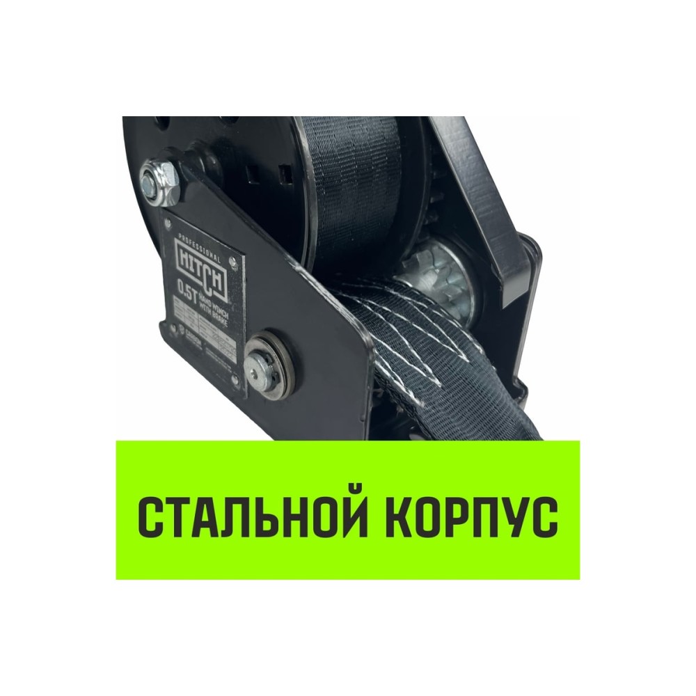 Ручная барабанная лебедка с тормозом HITCH HWB 500 кг, лента 10 м SZ073181