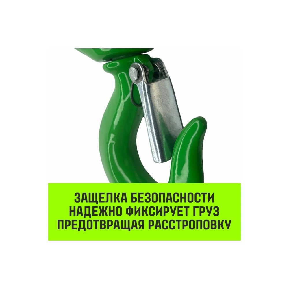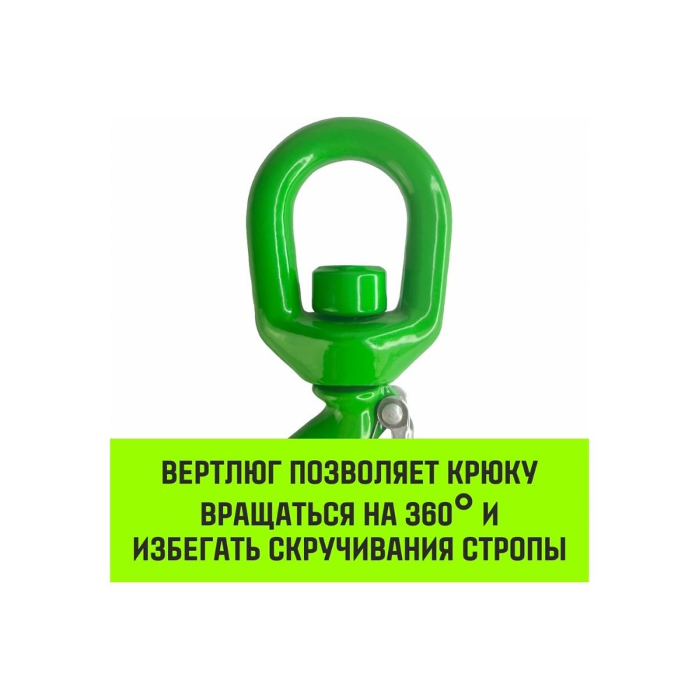 Крюк HITCH снабжен предохранителем и надежно фиксирует груз на ветвях. Наличие вертлюга позволяет крюку вращаться в любом направлении и избежать скручивания ветвей стропа, что облегчает процесс строповки груза.