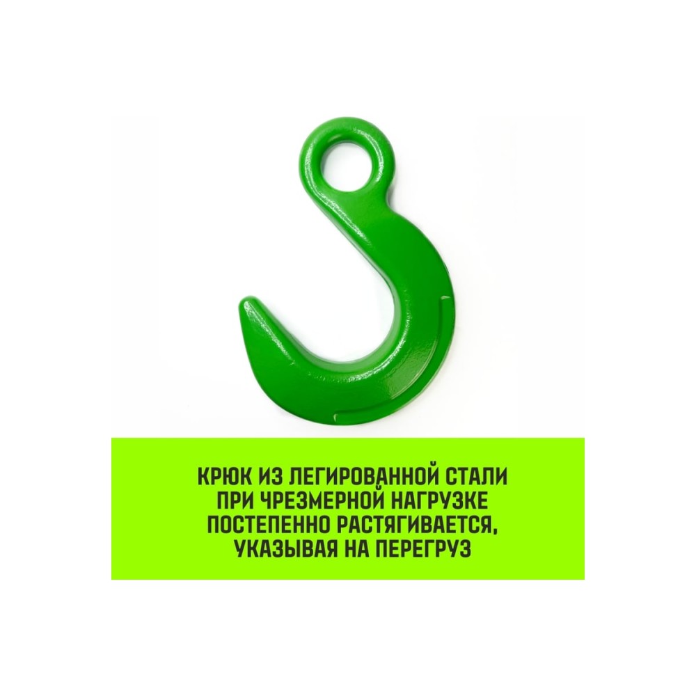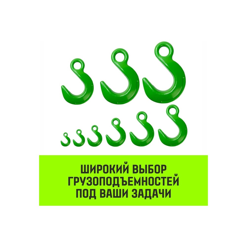 Крюк подходит для всех типов строп. К цепным стропам присоединяется через соединительное звено.