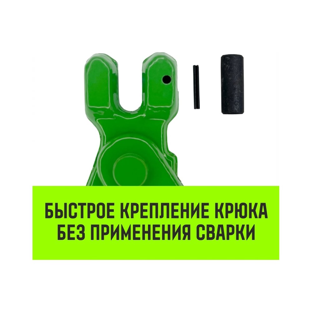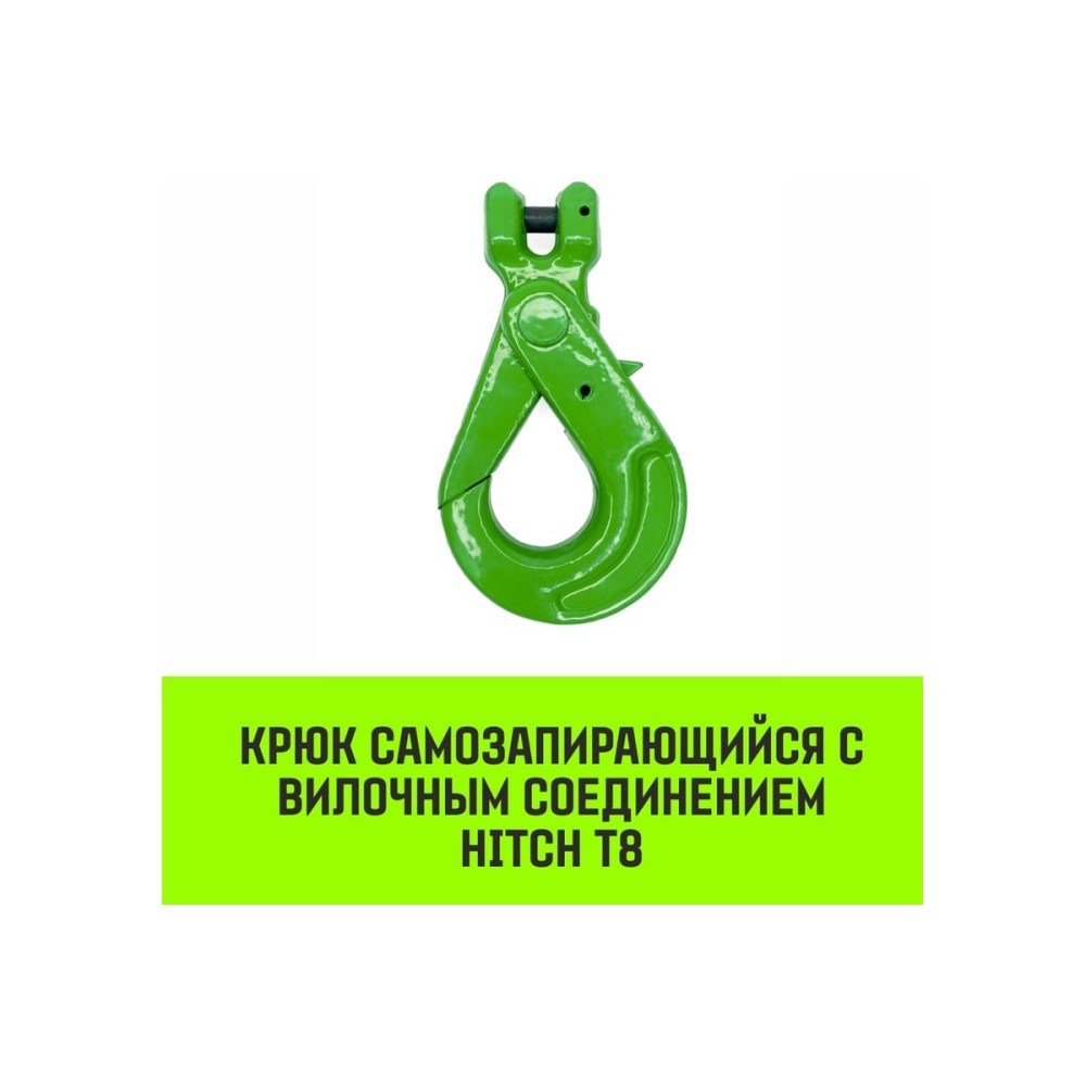 Крюк самозапирающийся с вилочным соединением 7/8-Т8 кл, 2 T HITCH SZ071261 используется в качестве концевых элементов при изготовлении цепных строп и грузозахватных приспособлений с использованием цепей. Крепление к цепи производится с помощью силового штифта: запорный палец фиксируется шплинтом, что позволяет быстро установить крюк без использования соединительного звена.