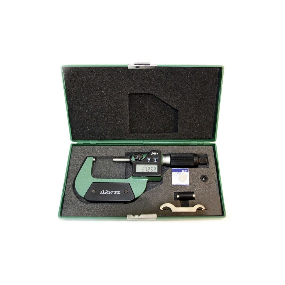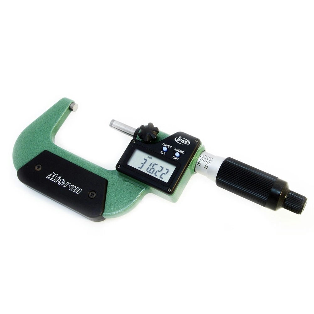 Микрометр МКЦ- 25 0,001 электр. в/защищ. МИК PRO - цифровые микрометры для измерения наружных линейных поверхностей. Используется в области малых размеров с низкой погрешностью (от 2 мкм до 50 мкм в зависимости от класса точности инструмента и измеряемых диапазонов). Преобразовательным механизмом микрометра является микропара винт-гайка. Принцип измерения микрометром построен на перемещение винта вдоль оси при вращении его в неподвижной гайке. Считывание показаний происходит по средствам электронного дисплея, куда они выводятся в готовом виде. Цифровой блок обладает функцией установки инструмента на ‘’нуль’’ и смены системы исчисления с метрической на дюймовую.