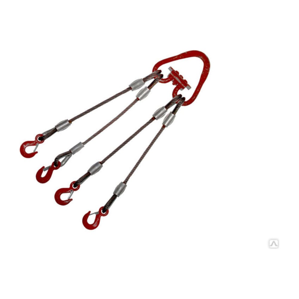 Канатный четырехветвевой стальной строп КанТраст 4СК 6,3/4000 (опрессовка) 4SKO634000 представляет собой надежное грузозахватное приспособление, состоящее из четырех стальных тросов, звена соответствующей грузоподъемности, чалочных крюков на концах для надежного удержания груза.