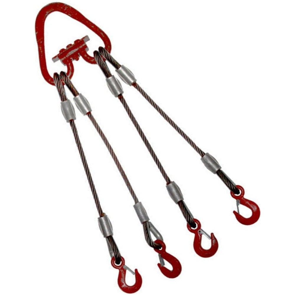 Канатный четырехветвевой стальной строп представляет собой надежное грузозахватное приспособление, состоящее из четырех стальных тросов, звена соответствующей грузоподъемности, чалочных крюков на концах для надежного удержания груза.