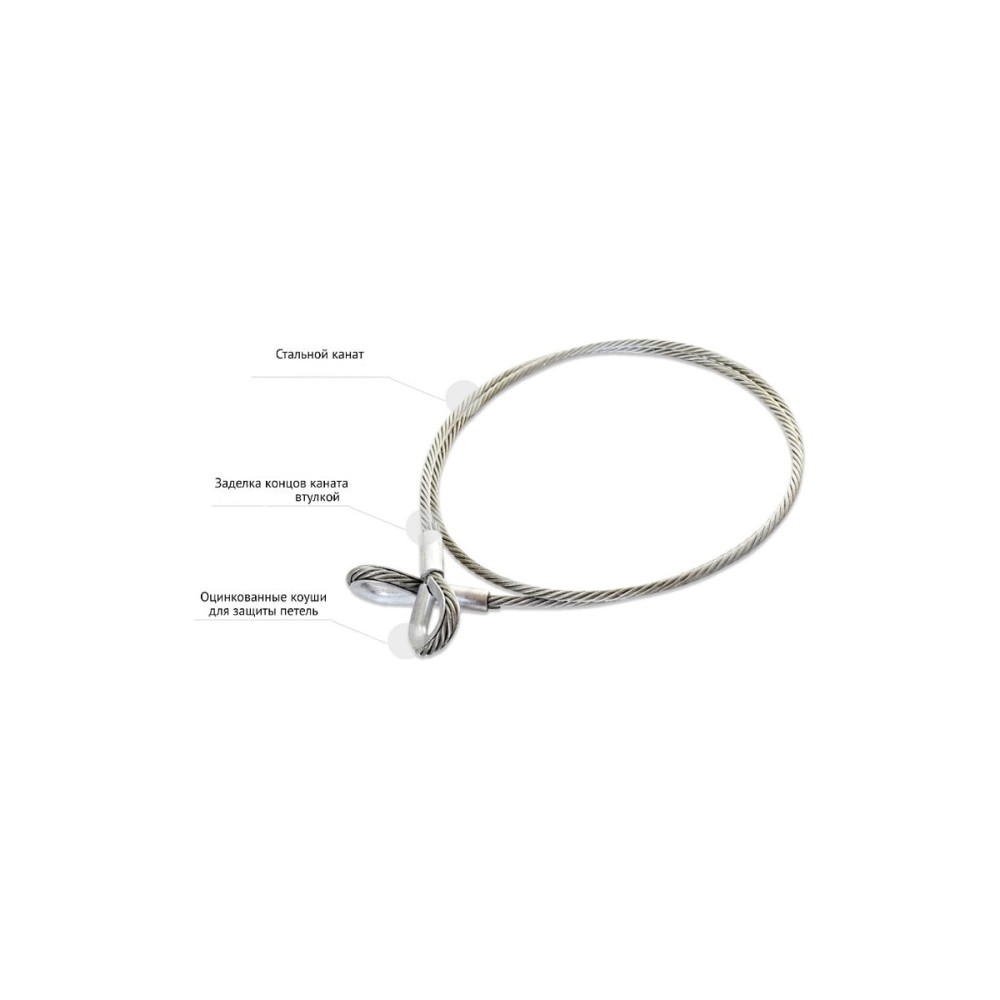 Ветвь канатная (ВК) - это грузозахватное приспособление, которое используется для подъема и фиксации различных грузов. Изготавливается из стального каната методом опрессовки алюминиевой втулкой с использованием коушей, которые придают форму петле и предотвращают канат от истирания и излома.