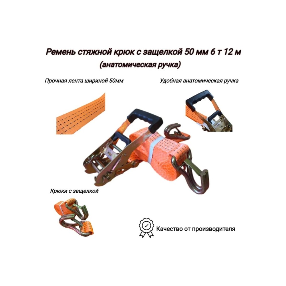 Тип ремень с крюками и фиксатором Стяжное усилие 6 т Длина 12 м Ширина 50 мм Цвет оранжевый Материал полиэстер ГОСТ/ТУ EN 12195-2 Вес нетто 3 кг Количество в упаковке 1 штГарантия производителя 12 месяцев