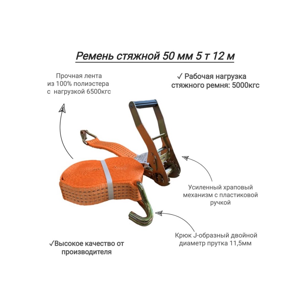 Тип ремень с крюками и фиксатором Стяжное усилие 5 т Длина 12 м Ширина 50 мм Цвет оранжевый Материал полиэстер ГОСТ/ТУ EN 12195-2 Вес нетто 3.02 кг Количество в упаковке 1 штГарантия производителя 12 месяцев