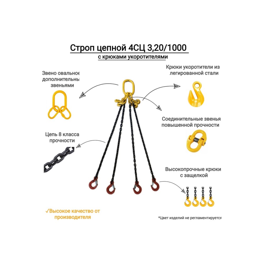 Цепной четырехветвевой строп КанТраст 4СЦ 3,2/1000 с крюками укоротителями 4STS3201000R