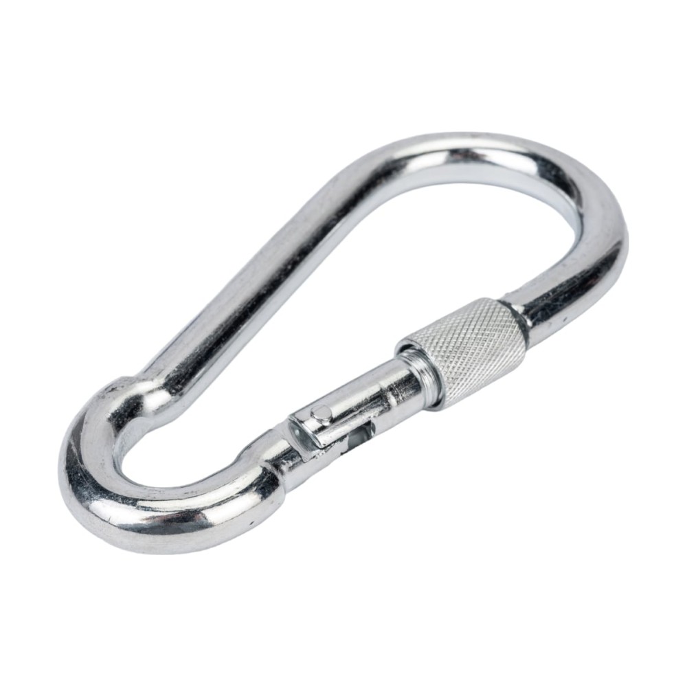 Пожарный карабин с фиксатором КРЕП-КОМП DIN 5299 D, м12 кпф12мф обеспечивает оперативное соединение цепей, канатов и тросов. Он имеет компактное исполнение, прост в эксплуатации. Устройство используется для поясного крепления специалистов, участвующих в монтажных и спасательных работах.