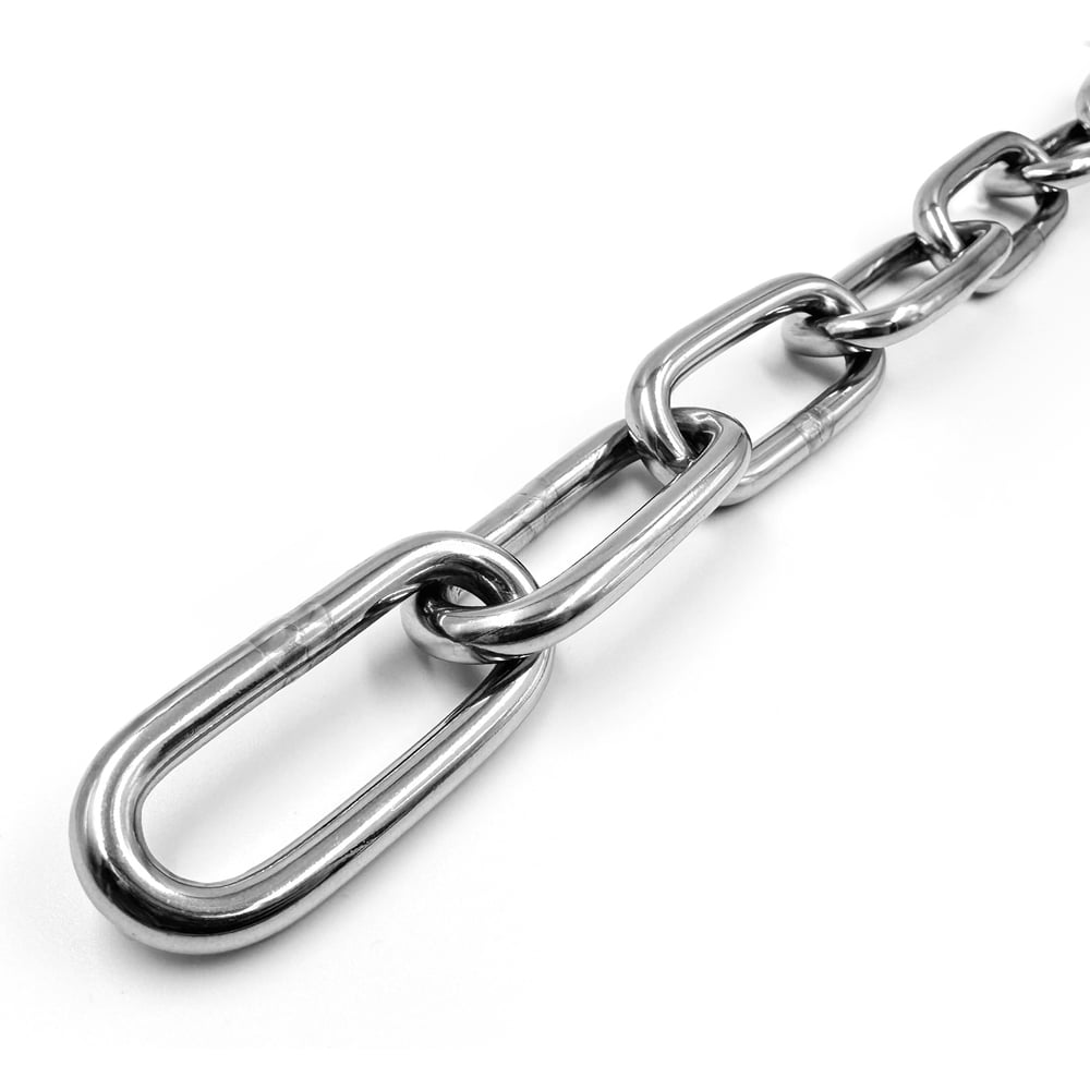 Цепь сварная длиннозвенная DIN 763 из нержавеющей стали А4* используется при строительных, монтажных и такелажных работах для создания страховочных растяжек, натягивающих элементов. Также применяется для подвеса статичных конструкций.