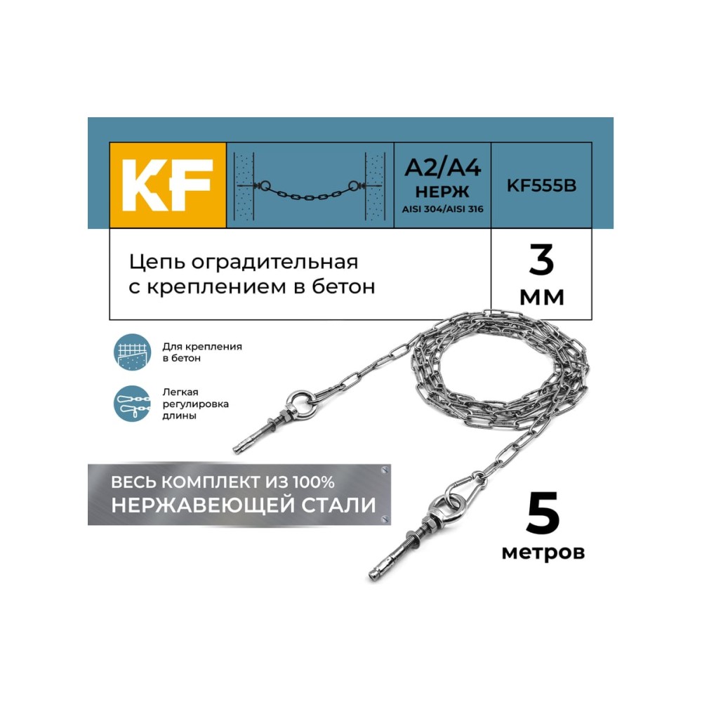 Цепь оградительная KREPFIELD с креплением в бетон, 5 метров KF555B-5