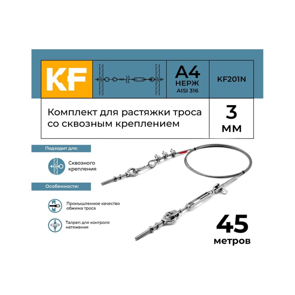 Комплект для растяжки троса со сквозным креплением KREPFIELD KF201N 45 метров KF201N-45