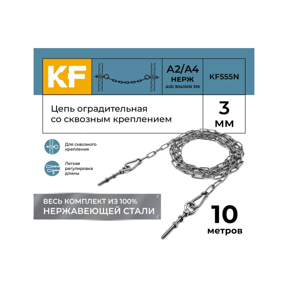 Цепь оградительная KREPFIELD со сквозным креплением, 10 метров KF555N-10