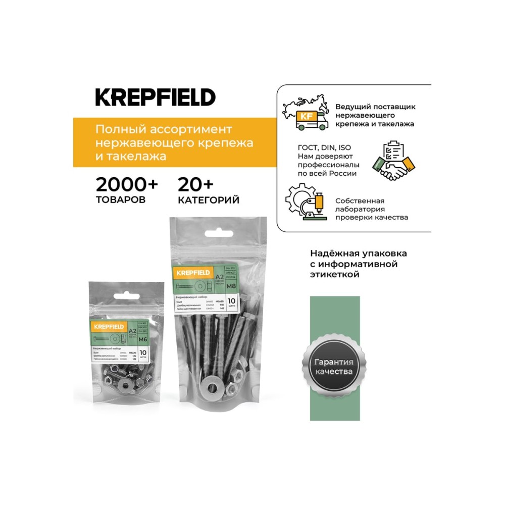 Все элементы конструкции выполнены из нержавеющей стали марки А2 и А4 (AISI 304, AISI 316), обладающей повышенной коррозионной стойкостью. Это позволяет использовать Комплект KF555N как под открытым небом, так и в некоторых агрессивных средах: в промышленных зонах и вблизи оживленных автомобильных трасс и т.д.