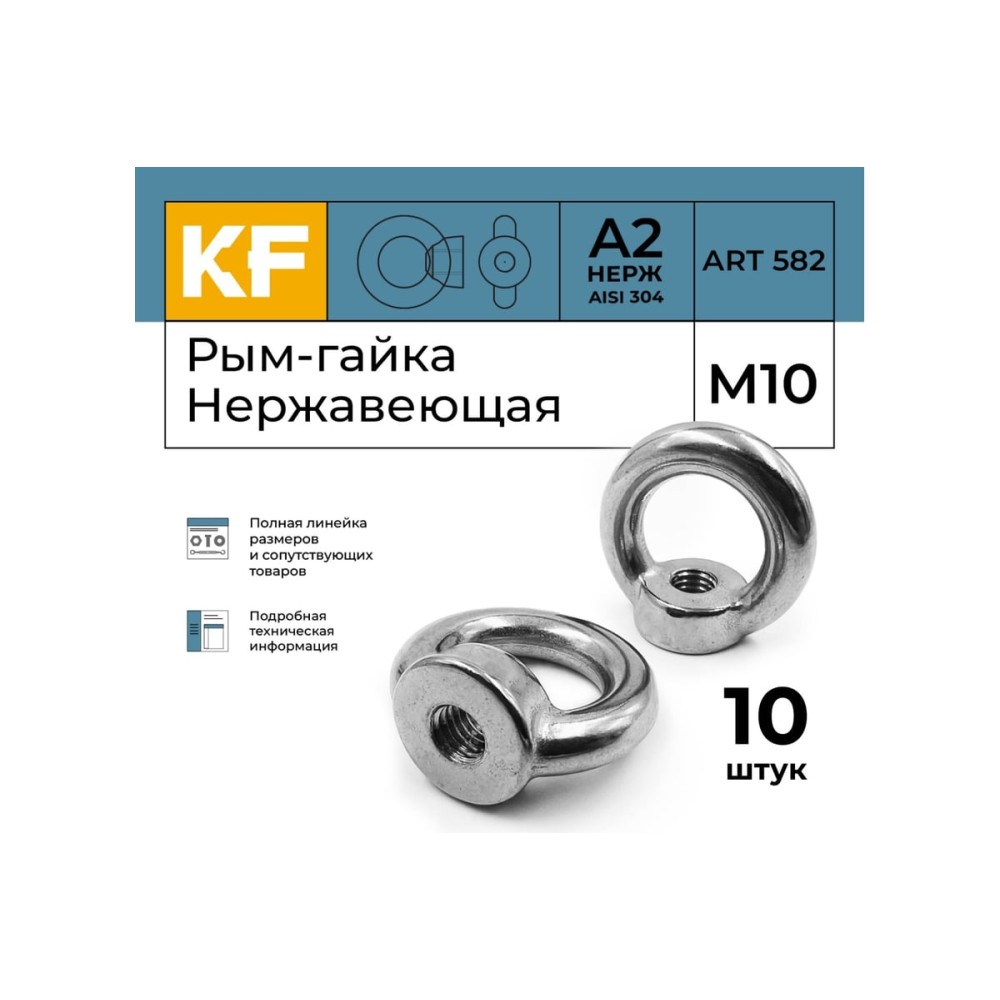 Нержавеющая рым-гайка KREPFIELD М10, ART 582, А2, 10 шт. 582А2РЫМГАЙКАМ10-10
